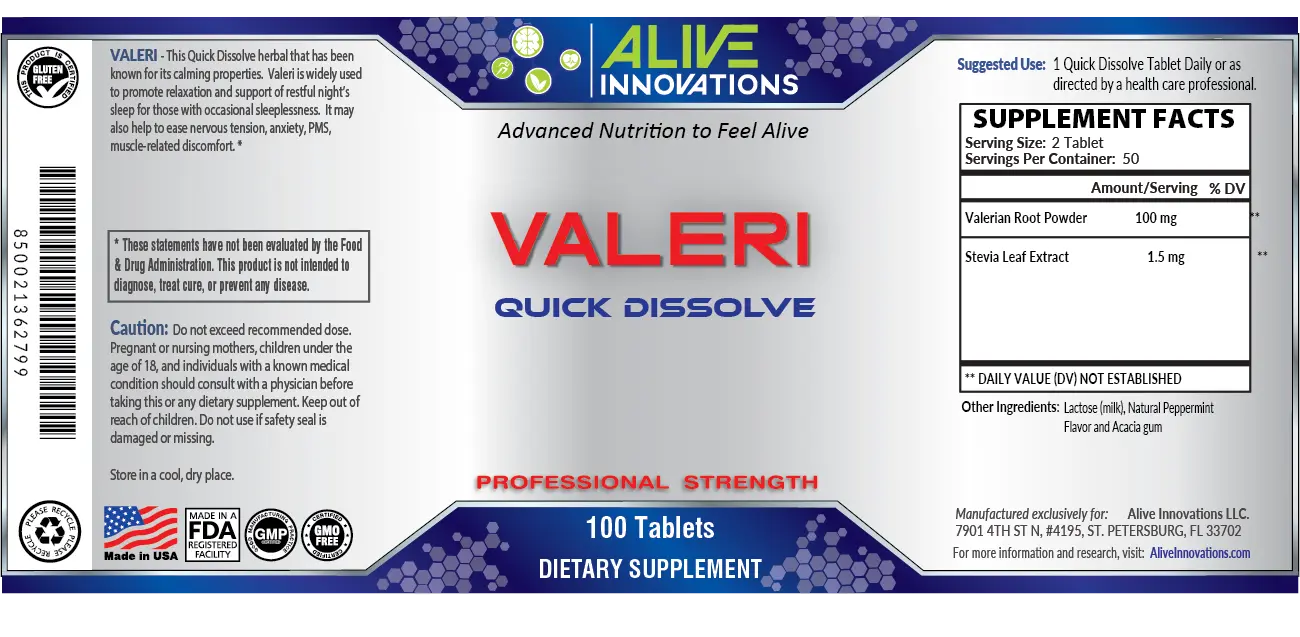 Valeri – Valerian Root Supplement | Natural Sleep & Relaxation Support Valeri is a quick-dissolve herbal supplement crafted with Valerian root, known for its calming and sleep-supporting benefits. This convenient format makes it easier for your body to absorb — helping you relax, ease stress, and enjoy restful sleep.